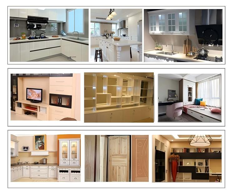 1- الأعمال الخشبية: الأبواب الخشبية والأثاث، والنوافذ، والطاولات والكراسي، والخزائن والألواح، واللوحات الموجية ثلاثية الأبعاد، و MDF، ومكتب الكمبيوتر، والآلات الموسيقية، إلخ