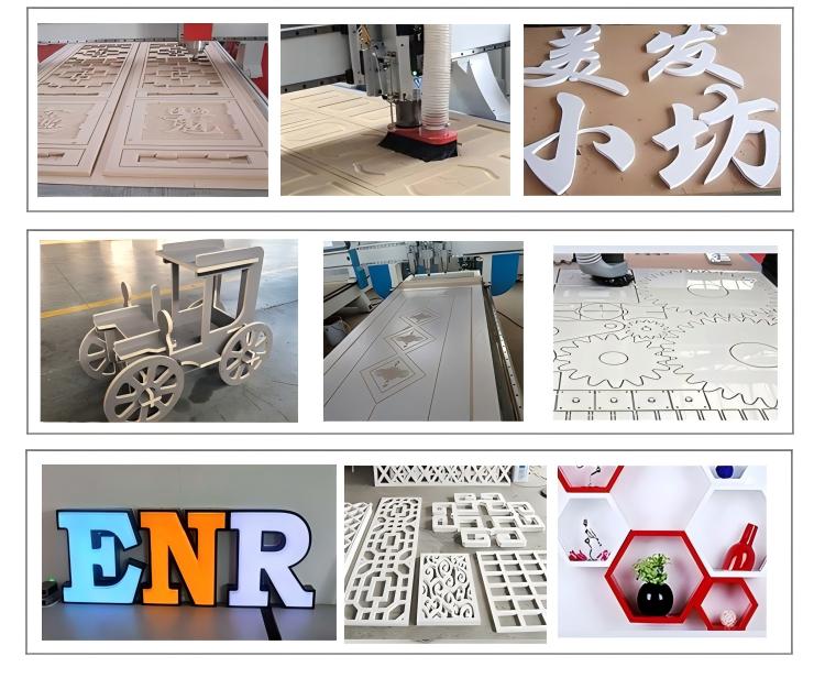 1- الأعمال الخشبية: الأبواب الخشبية والأثاث، والنوافذ، والطاولات والكراسي، والخزائن والألواح، واللوحات الموجية ثلاثية الأبعاد، و MDF، ومكتب الكمبيوتر، والآلات الموسيقية، إلخ